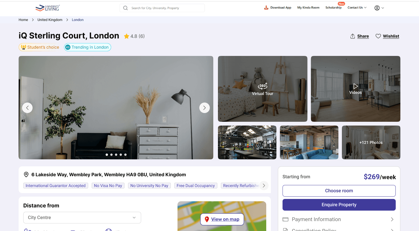 University Living helps international students discover student accommodation and raise enquiries — not complete end-to-end bookings.